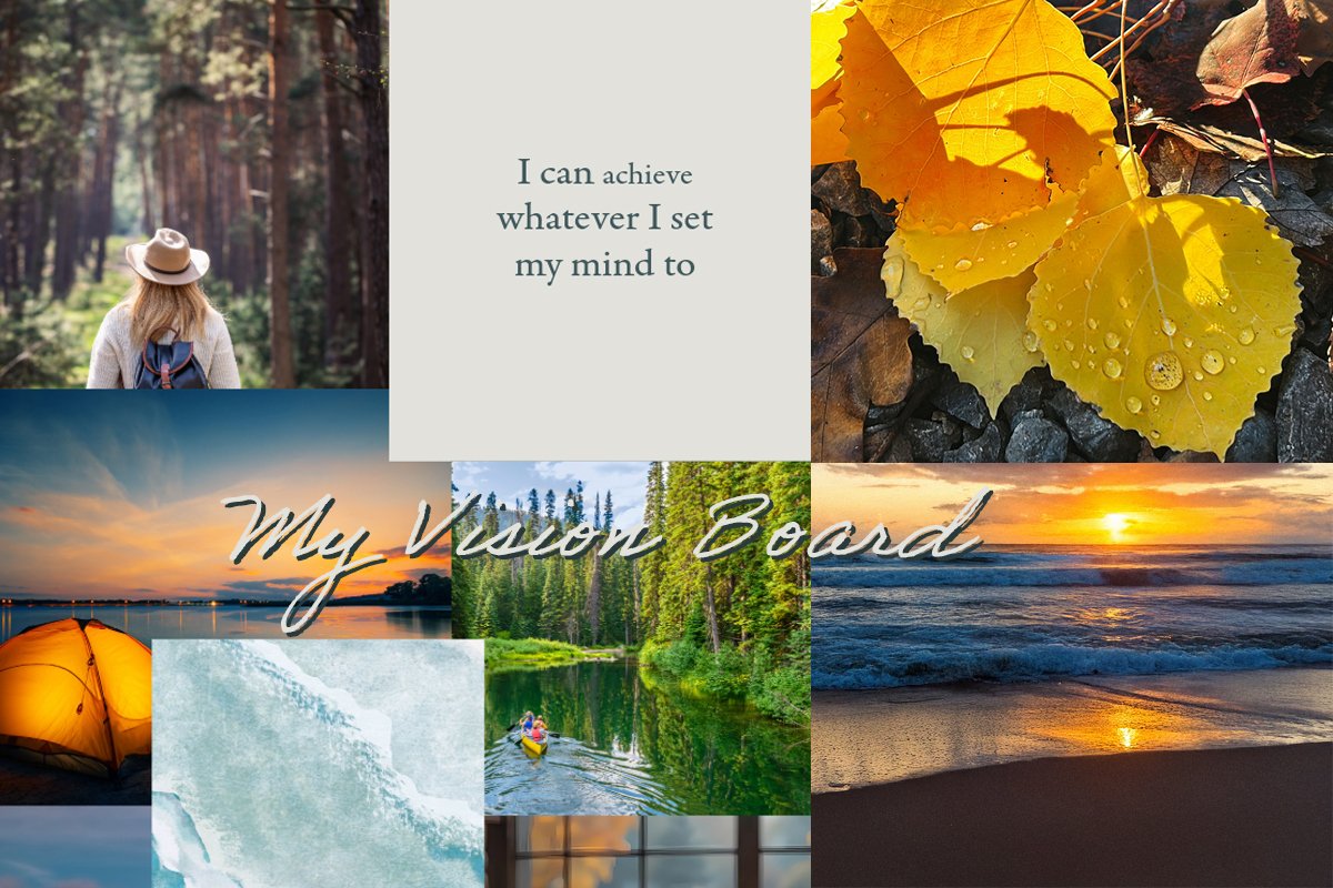 If you’re going digital, Canva can be a great tool. Making it easy to create a clean, inspiring board you can use as a wallpaper. Pro tip: choose photos that feel like your life... not just the “perfect” version of it.